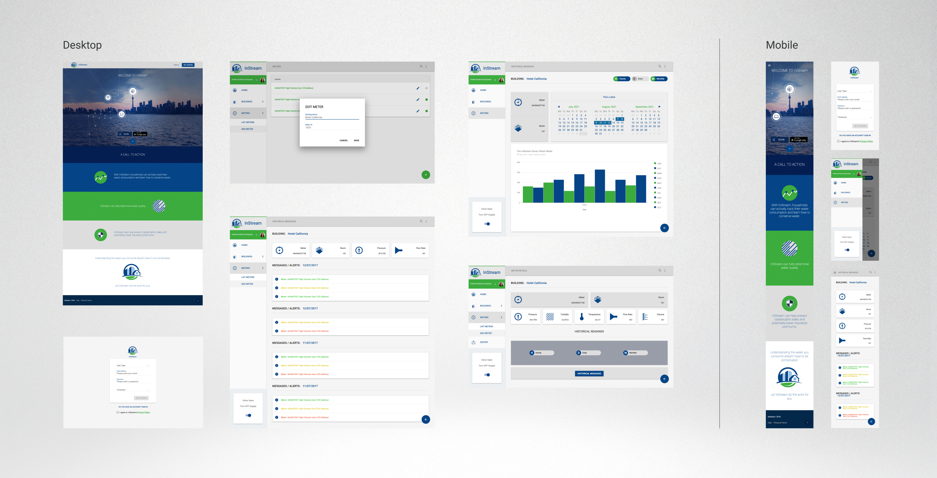 Worked on the second phase of InStream, a tool designed for homeowners to monitor their water usage and gain insight into water quality. This was a short-term project for research, they already had a brand identity and as the UI designer of the project I was responsible for building the views that were built utilizing Google Material Design framework. The main objective of this phase was to initiate data collection at the earliest possible stage. +
