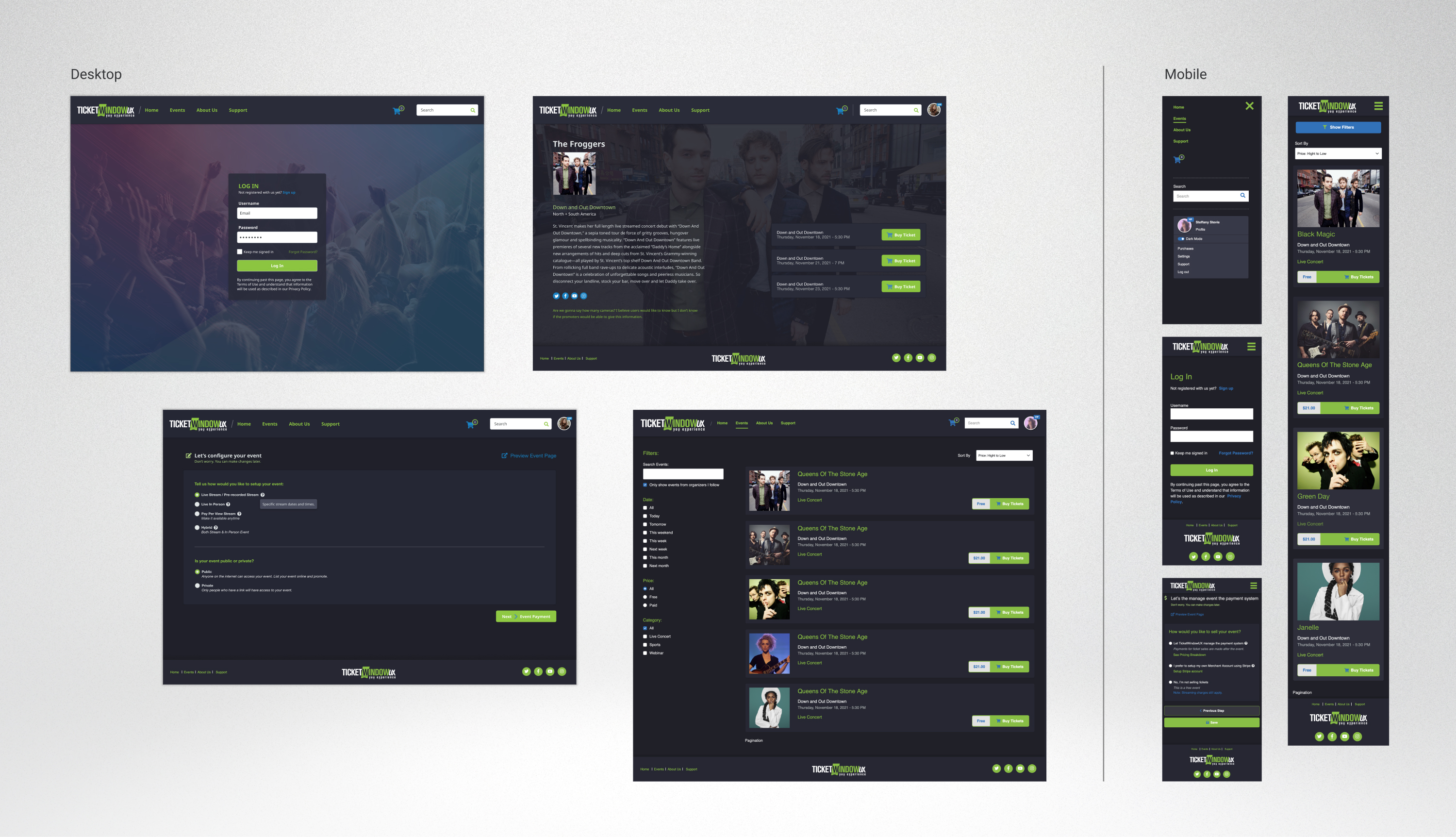 Worked on TicketWindowUX, a research project focused on simplifying live event streaming for local artists and event producers. The initial phase involved extensive meetings and iterative mockups to align with the client's requirements.Transitioned to web design, utilizing Bootstrap to facilitate future modifications by the developers already familiar with the framework. Used Adobe XD, HTML, SASS, and Bootstrap to create an intuitive solution, keeping in mind the project's short-term nature (approximately three months each). +